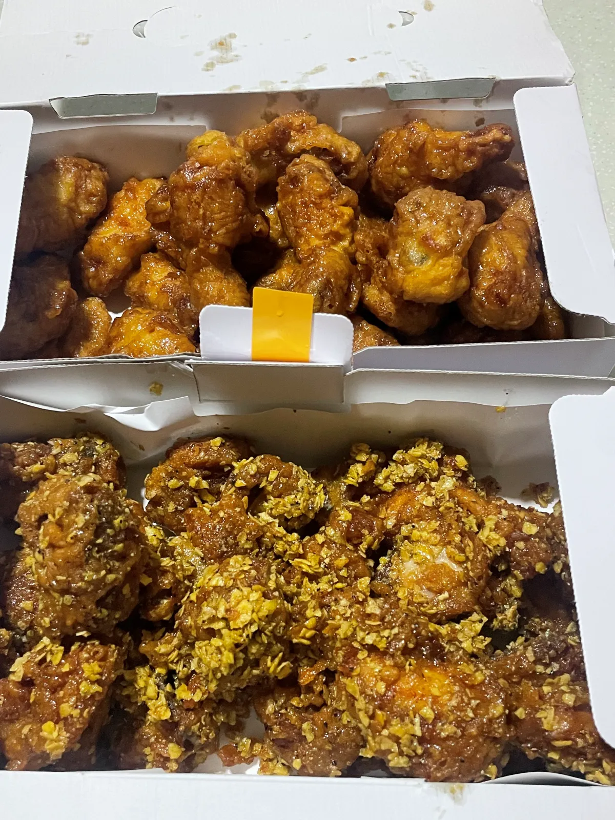 허니콤보는 자주 먹어도 양념맛이 질리지 않네요. 적당히 달면서 짭조름한 맛이 매력적인 것 같아요. 신메뉴인 교촌 옥수수 오리지날엔 옥수수 후레이크가 있어요. 메뉴이름처럼 옥수수 풍미가 느껴져서 맛이 좋았는데, 먹다 보니 마늘맛도 많이 나더라고요.