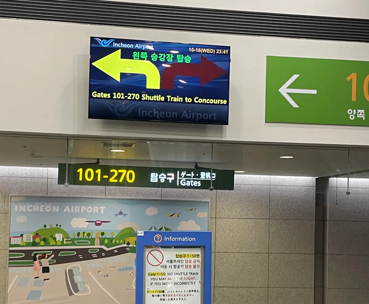 탑승구 5~50번은 내려가면 안되고, 101~270번만 셔틀트레인을 타서 이동하면 됩니다.