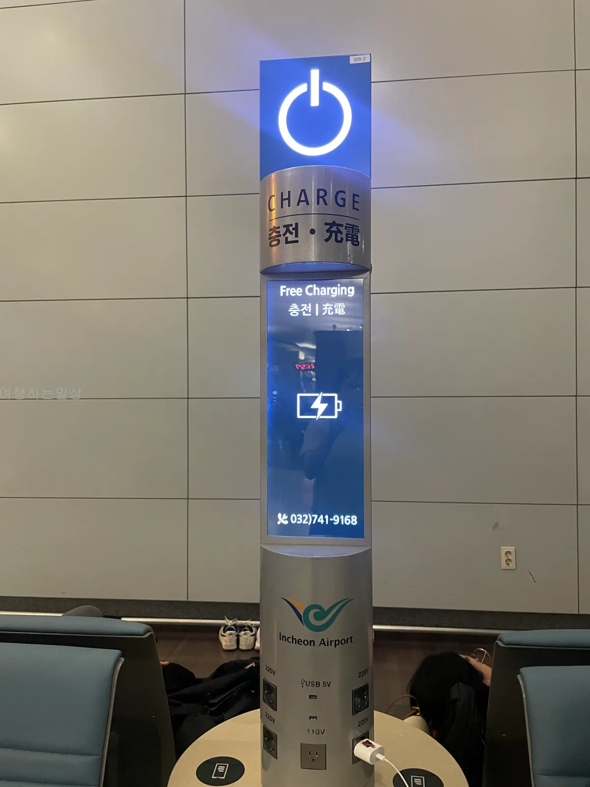 탑승구 기준 왼쪽에는 의자가 많이 있었고, 오른쪽에는 충전할 수 있는 부스가 딱 보였어요. 제가 생각한 명당자리는 여기입니다.
