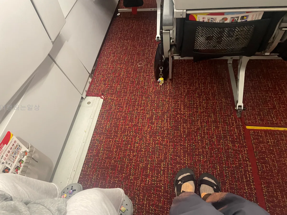 비상구 좌석을 처음 이용해봤는데 응급상황을 대비해서 자리 아래에 가방을 놓을 수 없더라구요. 모든 짐은 위에 올려야 합니다.
