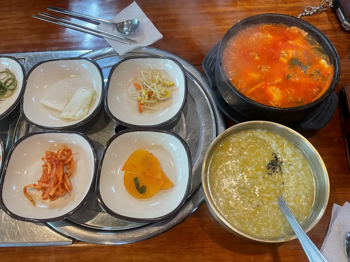 어죽이 이름부터 새로웠는데 매운탕 국물에 국수, 수제비, 채소가 있는 음식이에요. 뚝배기에 나와서 먹는 내내 따뜻하게 먹을 수 있어 좋았어요. 전복죽은 예상했던 맛이라 다음에 가면 어죽을 또 먹을 것 같아요.