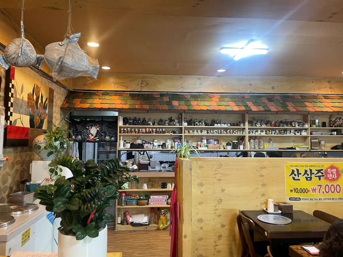 테이블 옆쪽엔 소품들이 전시되어 있었어요. 식당에 어른들이 주로 있었는데 매운탕류를 많이 시키시더라구요. 메기매운탕, 붕어찜 등 색다른 음식이 있으니 식사시간을 즐기면서 먹고 싶으시다면 추천드리고 싶습니다.