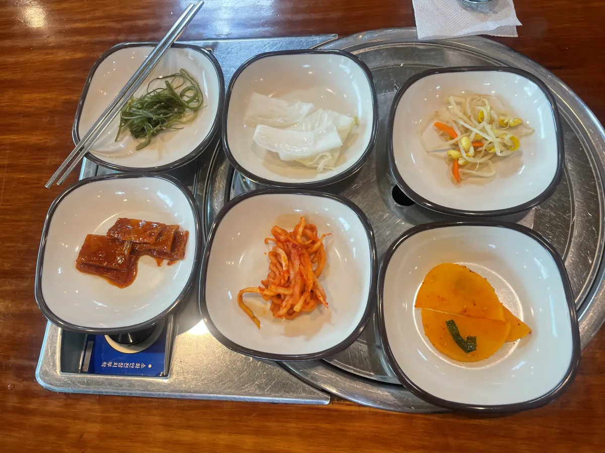 주문하면 기본 반찬을 먼저 주십니다. 추가반찬은 셀프바를 이용하면 되더라구요.