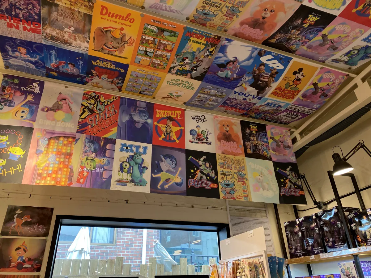 인사이드아웃1에서 빙봉이 너무 귀여워서 포스터를 구매했었어요. 행궁동 스모어팩토리에서 구경하고 천장을 보는데 포스터가 가득한거에요ㅠㅠ 공간을 알차게 꾸며놓으셨는데 마지막으로 포스터를 보고 감동이..